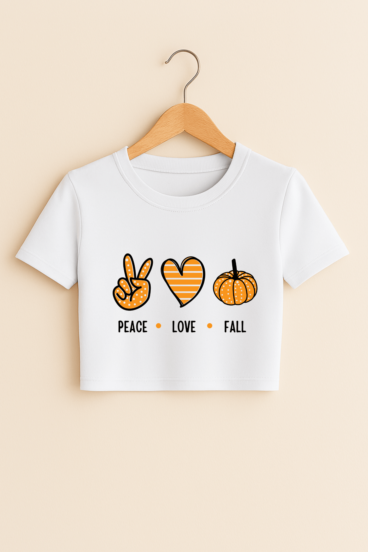 "Peace, Love, Fall" Crop Top in White - The Vibed Vines