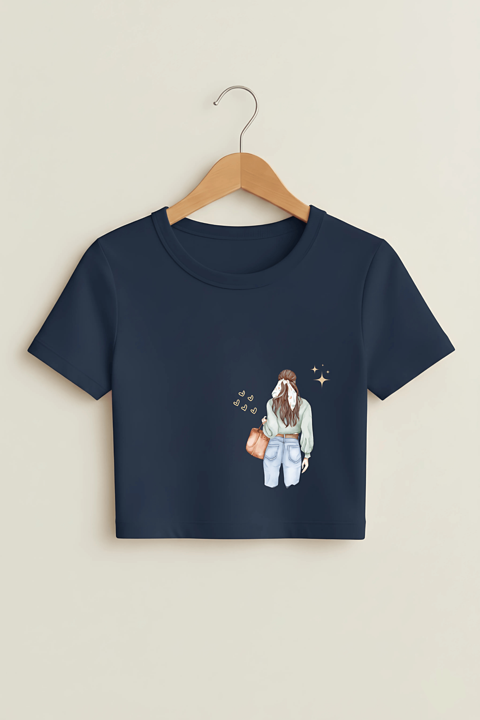 "Stylish Traveller" Graphic Crop Top in Navy Blue - The Vibed Vines